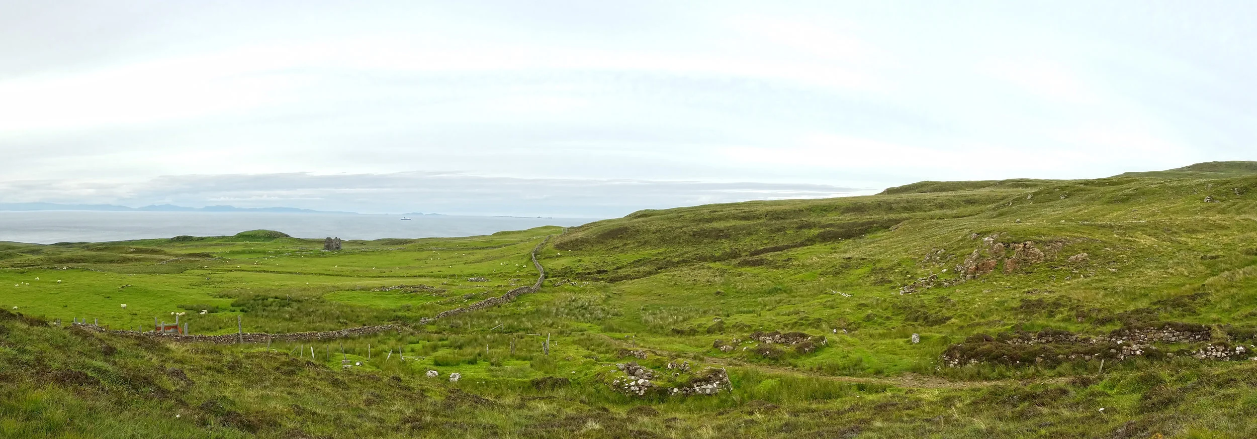 The abandoned village of Unish, on the Waternish peninsula on the Isle of Skye, is a casualty of the Highland Clearances. Made of up 47 abandoned buildings, most of which are now just broken knee-to-waist-high stone rectangles, Unish is about eight miles from the nearest inhabited village (Stein). Unish was first documented in 1708, but by 1880, it included just one occupied house.